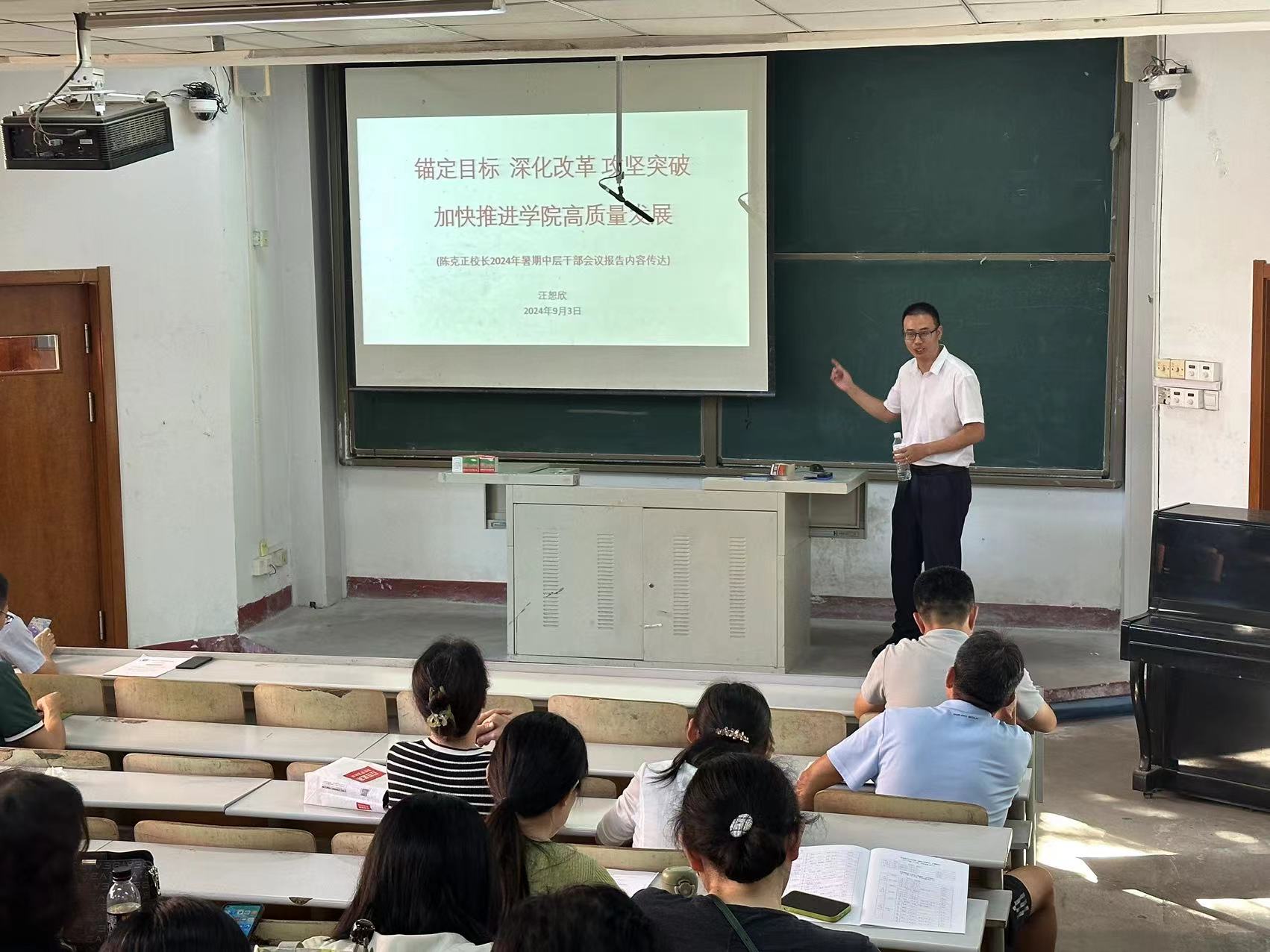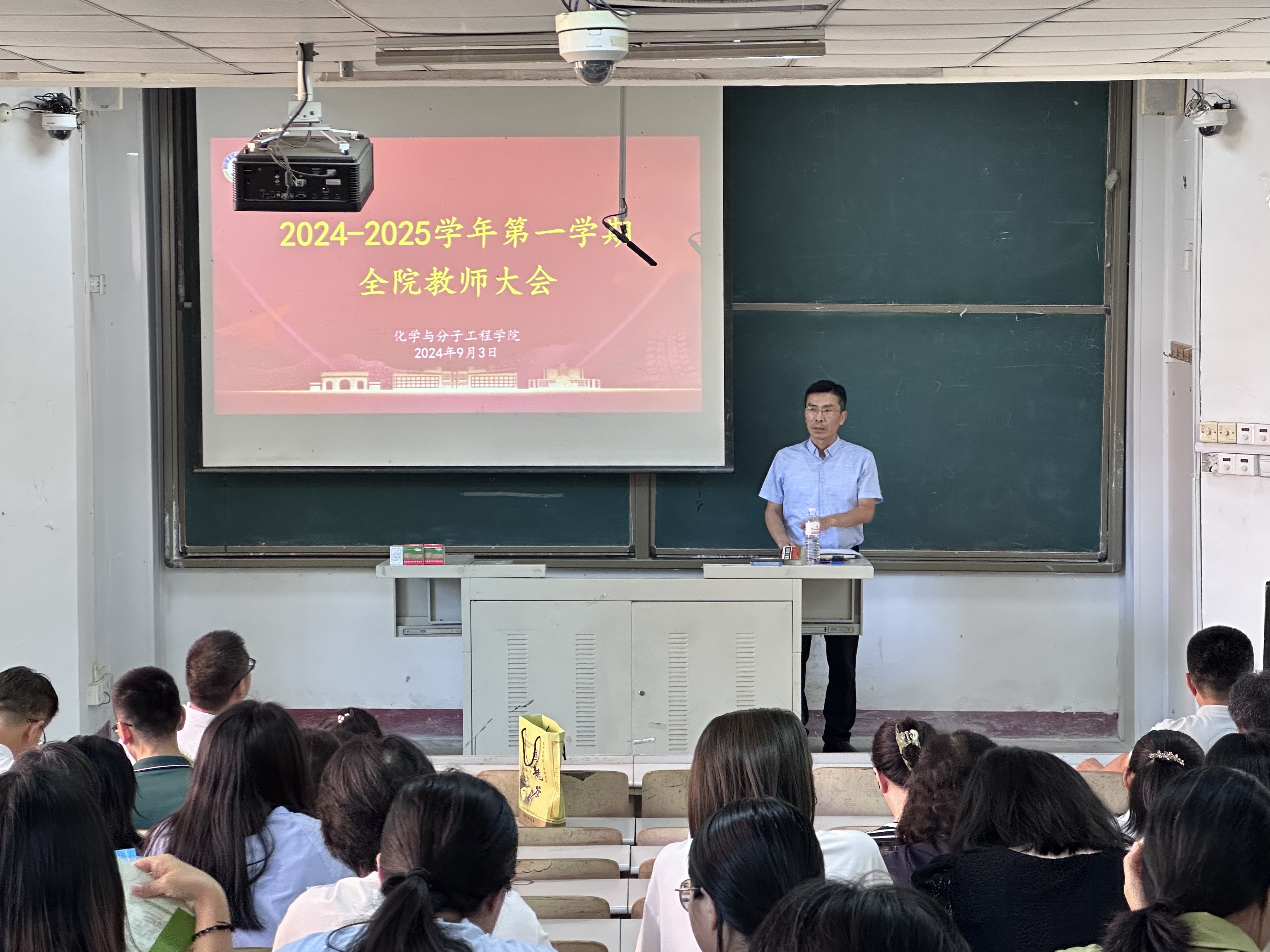为进一步明确新学期工作目标,营造和谐、文明、有序的教育教学氛围,使全体教职员工以良好的精神面貌投入到新学期的工作中,学院于9月3日下午在二教111召开2024-2025学年第一学期全体教职工大会,会议由学院党委书记肖强主持。