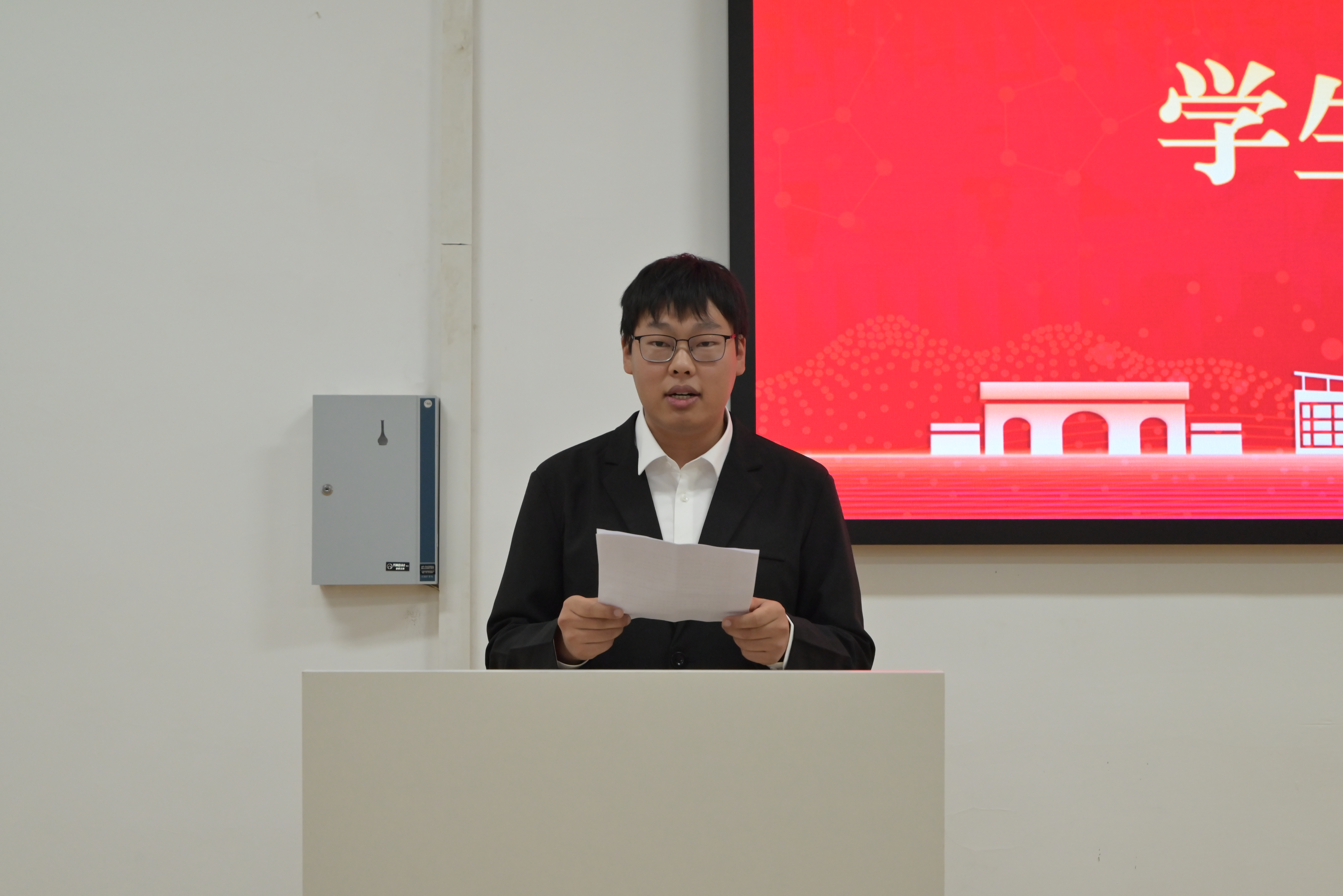 刘尧上台致辞、昝祺祺宣读《化学院2024-2025学年青马工程培训班实施方案》、学员代表上台发言,表达参加培训的决心和信心。