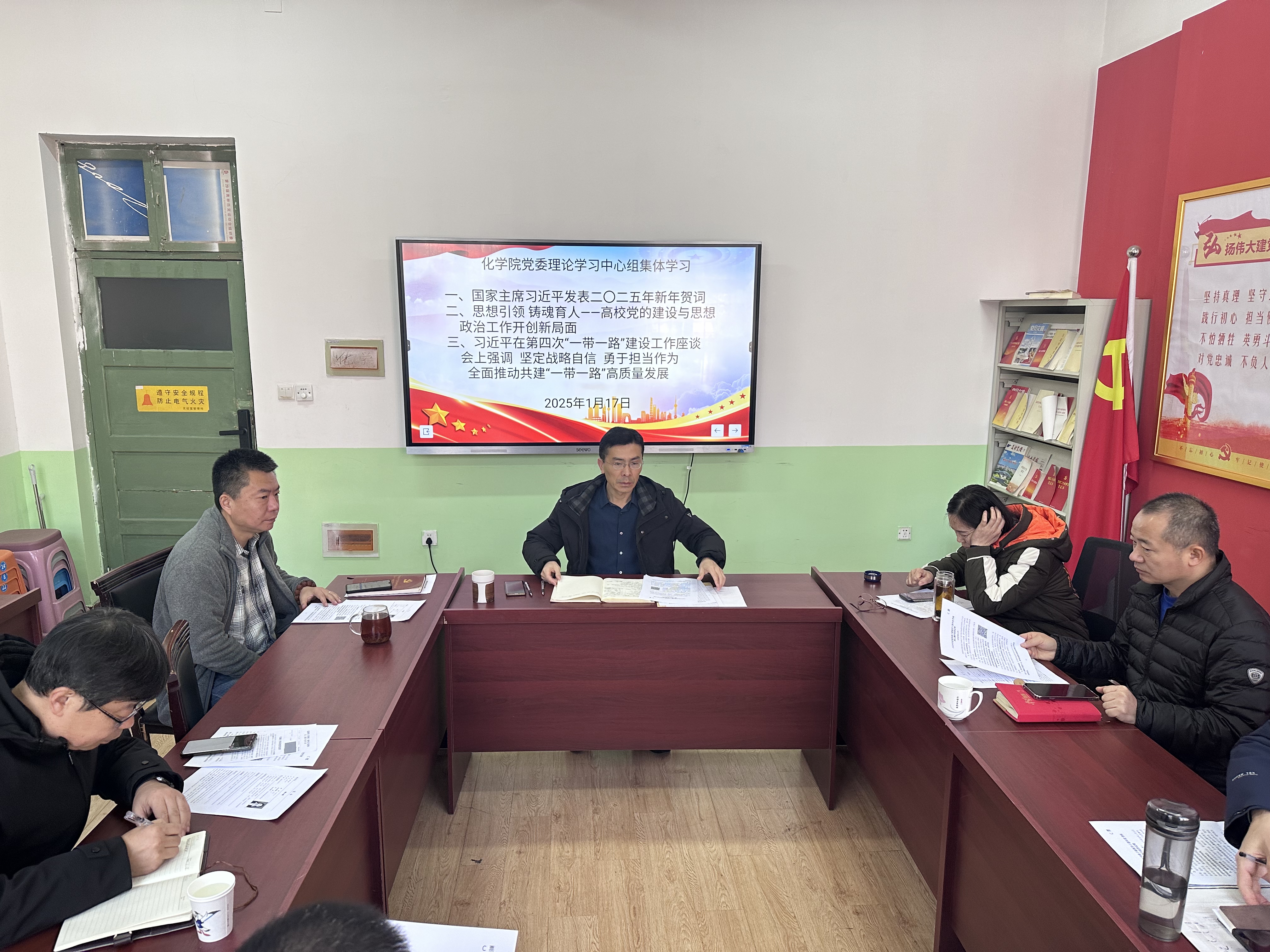 1月17日,化学院党委理论学习中心组举行2025年度第一次集体学习,学习国家主席习近平二〇二五年新年贺词、习近平总书记关于高校党的建设与思想政治工作相关讲话精神、习近平在第四次“一带一路”建设工作座谈会上的讲话精神。学院党委理论学习中心组成员参加学习。学院党委书记肖强主持学习并讲话。
