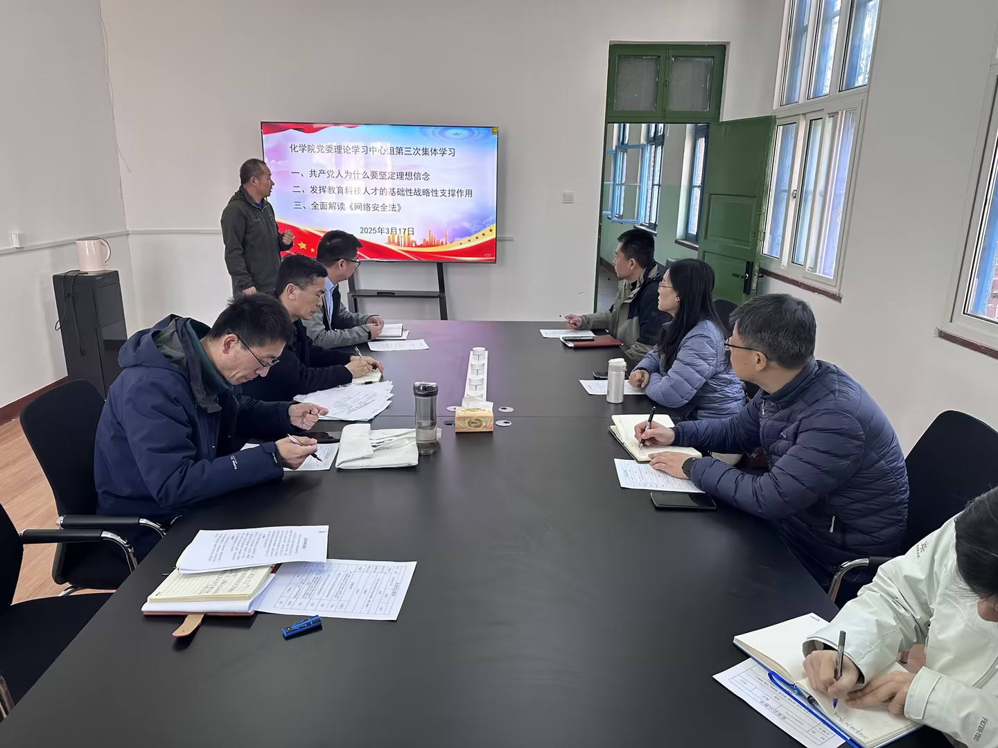 3月17日,学院党委理论学习中心组在能源化学教研室举行第三次集体学习,学院党委理论学习中心组成员参加会议,组织员张同雷带领大家一起学习了《共产党人为什么要坚定理想信念》、《发挥教育科技人才的基础性战略性支撑作用》、《全面解读<网络安全法>》等三个主题,之后各位委员交流了自己的学习心得。