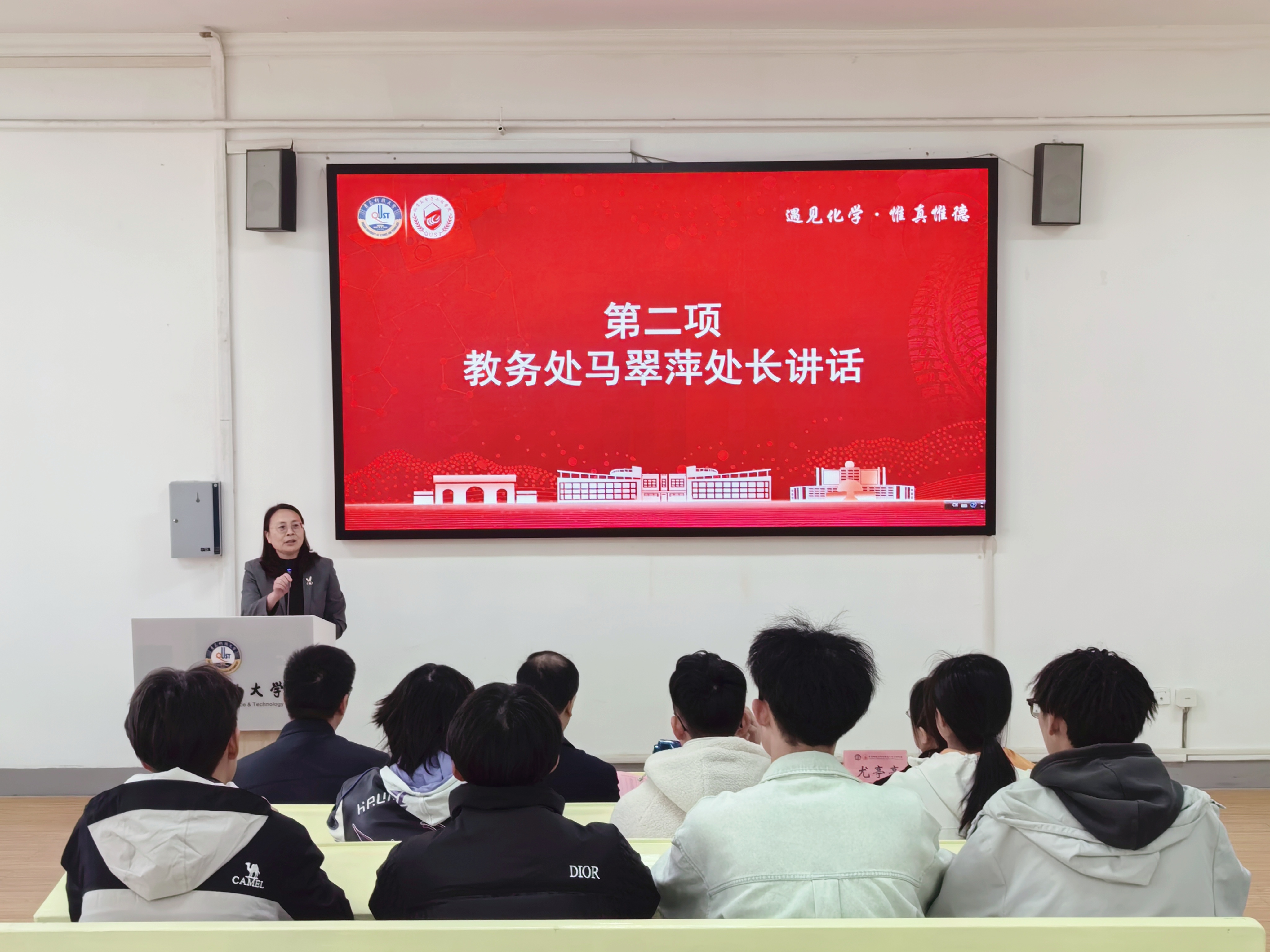 教务处处长马翠萍在讲话中指出,焦奎拔尖班的设立是学校持续深化教育教学改革,推进有目标有组织的人才培养改革,加快构建高水平人才培养体系,探索拔尖创新人才培养新路径的重要举措。她勉励同学们要珍惜这一宝贵的学习机会,在未来的学习中勇于创新、追求卓越。