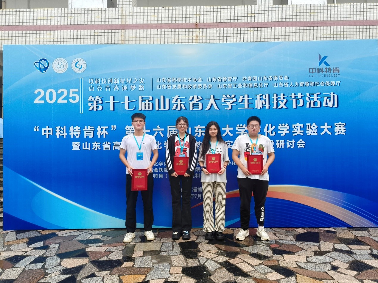 经过激烈角逐,我院选派的章佳凌、杨延彬同学获得一等奖,何明罡、刘亚杰同学获得二等奖。该成绩在山东省参赛高校中处于领先水平,这不仅是四位同学个人实力的出色展现,更是我院化学实验教学厚积薄发、育人成效卓著的有力证明!