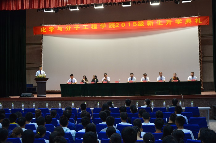 9月21日晚,化学院在四方校区西礼堂隆重举行2015级新生开学典礼。学院党政领导、分团委全体辅导员、新生班主任、部分教师代表,化学院全体2015级新生参加了典礼。大会由化学院分团委书记陈兵主持。