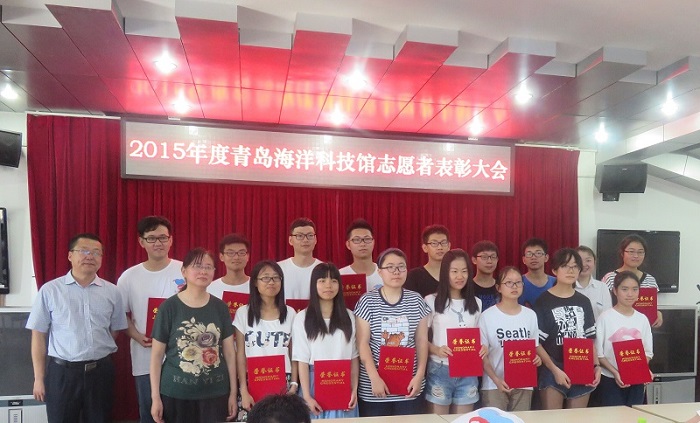 7月2日上午,2015年度青岛海洋科技馆志愿者表彰大会在青岛水族馆举行。青岛海洋科技馆党总支书记王云忠,科普辅导员于红梅,科普管理工作者丁剑玲出席大会并为优秀志愿者颁奖。yl23455永利集团和中国海洋大学等驻青高校六十余名志愿者参加了表彰大会。