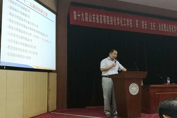 日前,山东省第十九届高等院校化学化工学院(系)院长(主任)会议暨山东省化学化工学会第七届理事会第四次会议在山东大学召开,来自省内40余所高校和科研院所的100余位化工专业教师参会。化学院副院长高洪涛、胡志强参加会议。
