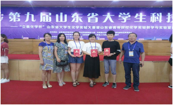 由于我院应用化学和化学专业为山东省应用型立项建设专业,学院领导给予了高度重视,要求结合专业建设要求、提升学生实践能力。化学院对此项赛事高度重视,由党总支书记王德宝、副院长高洪涛带队参赛,在罗世忠、唐林、王书文3位老师的精心指导下,参赛同学认真备战,经过笔试和实验操作两个环节的激烈角逐,化学院2014级王阿里、邹慧娜同学分别荣获一等奖、纪之骄同学荣获二等奖。
