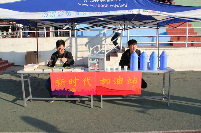 开幕式初,班级方队踏着整齐的步伐,迎面向主席台走来,青春洋溢的呐喊声,活力奔放的韵律操,展现了化学院学子的风采。赛场上,运动员们突破自我,挑战极限,赛场外,同学们摇旗呐喊,加油助威,尽显化学院学子的龙马精神。为深入学习党的十九大精神,以新作为响应新时代,本次运动会还特别设置了“十九大加油站”,为同学们提供热水和医药救助,并展示党刊党报,吸引同学们驻足学习。