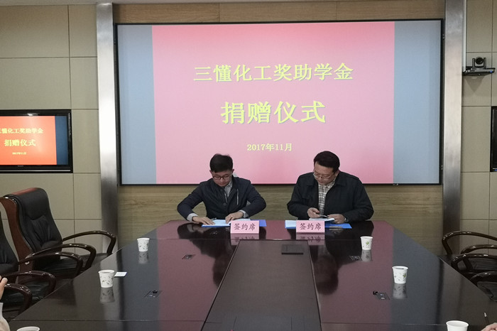 据悉,此次青岛三懂化工有限公司向yl23455永利集团化学院捐资设立“三懂化工奖助学金”,专项用于奖励yl23455永利集团化学院的优秀学生、困难学生,支持yl23455永利集团化学院的学生培养工作。
