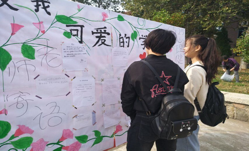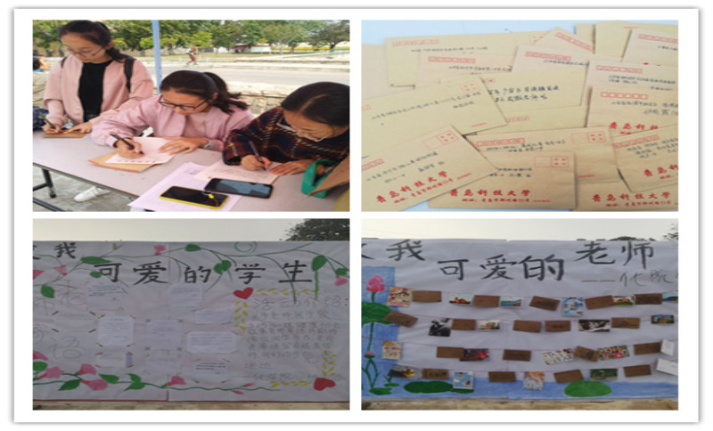 活动开始前一周,化学院联系各位任课教师,并向老师们发出寄语邀请,在老师们的支持下,制作了“致我可爱的学生”寄语展板,活动当天吸引大量学生驻足观看。现场还搜集了学生们写给老师的话语,整理完成“致我亲爱的老师”话语展板。同时,为现场同学准备信纸和明信片,义务为同学们提供寄送服务。