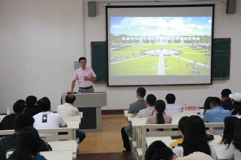 本次交流会由化学院副院长高洪涛主持。会议伊始,校友会主席陶玉兴分享了自己的留学经历,并介绍了特洛伊大学中国区校友会的创立与发展,勉励同学们对校友会做出更大的贡献,承诺会为海外学子提供更大的帮助。随后,王瑞峰与田泽远向预备参加交换计划的18级学生们介绍了特洛伊大学的基本情况、生活学习环境、在美国的生活习俗及注意事项等,帮助学生们更快更好地融入交换生活。会中,王瑞峰耐心回答了同学们提出的种种疑问,为即将进入交换学习的学生们消除顾虑,给参加过交换学习的同学们指明未来发展的方向。交流会最后,王瑞峰给同学们详细介绍了美国签证问题,并进行了模拟签证问答,提高学生的适应能力。