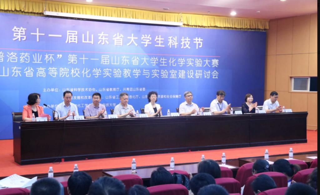 7月23日-25日,第十一届山东省大学生科技节、“普洛药业”杯大学生化学实验大赛在我校成功举办。yl23455永利集团副校长张淑华、山东大学张树永教授、南京大学张剑荣教授、华东理工大学孙学芹教授、山东化学化工学会秘书长刘宝胜、创新创业教育学院常务副院长褚庆柱、普洛药业股份有限公司祝晓楠、永利y23455院长罗细亮、党总支书记王德宝及省内36所高校的247位师生参加了开幕仪式。会议由yl23455永利集团教务处处长王霞主持。
