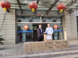 本次走访学院收到校友2009届无机化学研究生周晶个人捐赠一次性医用口罩1000支,医用酒精和84消毒液各6箱。