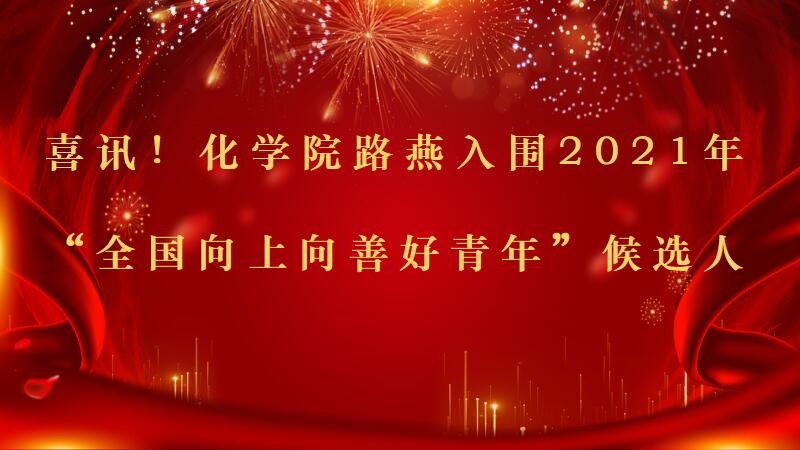 3月31日,由由共青团中央主办的2021年“全国向上向善好青年”评比名单揭晓,化学院路燕作为yl23455永利集团推荐唯一入围的学生,从勤学上进类突出重围,进入投票环节。