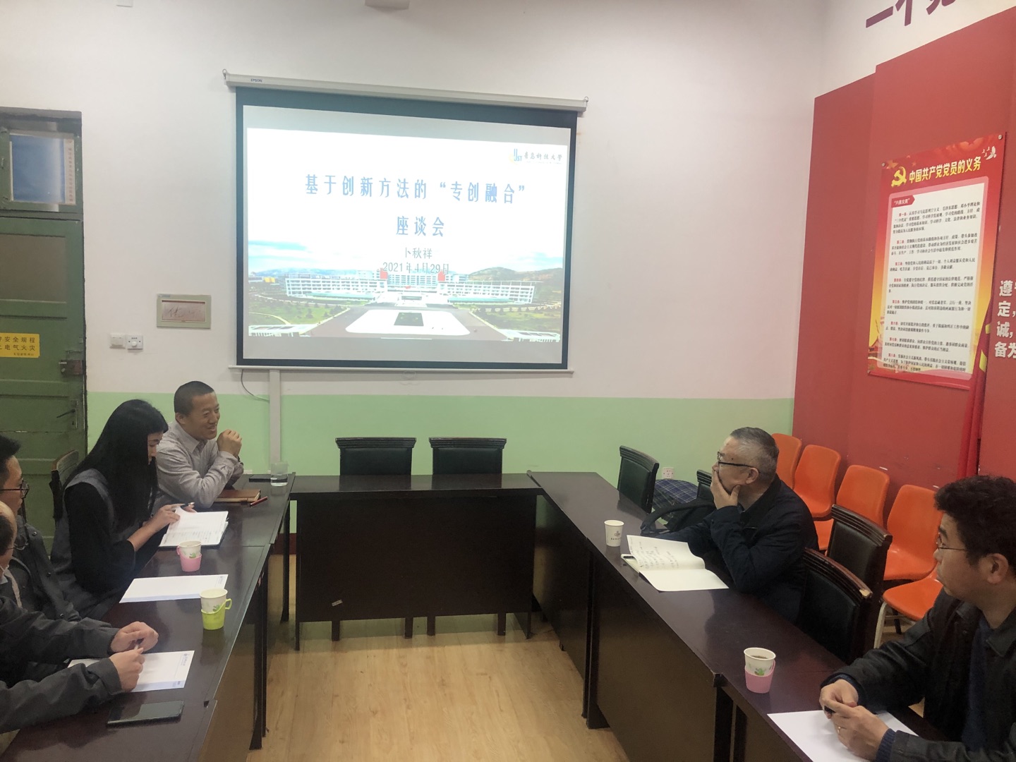 4月29日下午,教务处与化学院在一政223开展基于创新方法的“专创融合”座谈会,邀请教务处课程建设研究中心副主任卜秋祥老师担任主讲嘉宾。座谈会由化学院党委副书记兼副院长杨小明主持,应用化学教研室主任李东祥,教师代表吴中涛、贾肖飞,化学院学工办主任刘施施,研究生辅导员程丽参加会议。