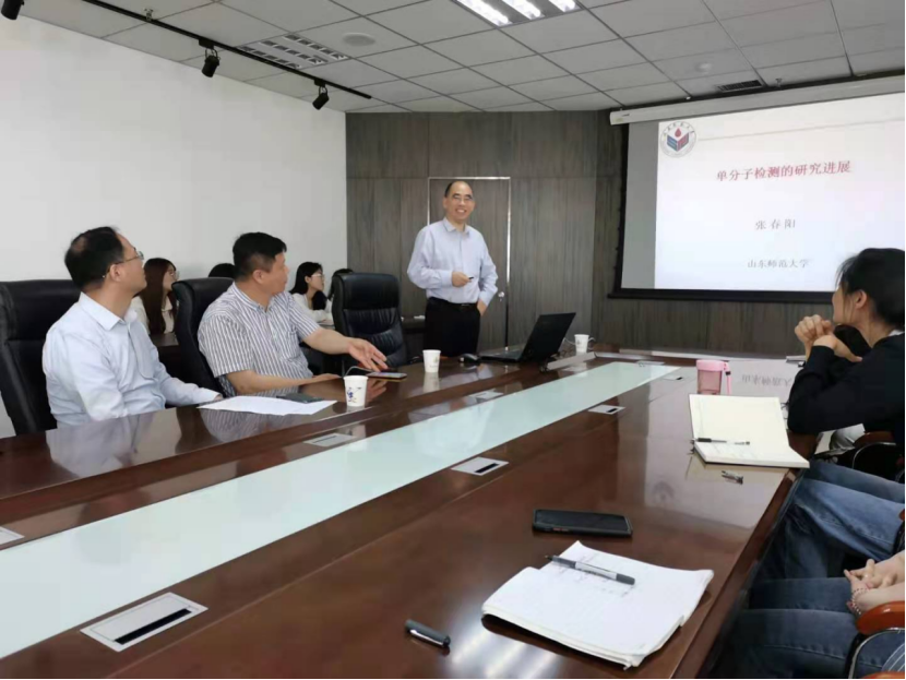 2021年5月24日上午,山东师范大学张春阳教授做客yl23455永利集团化学院,为广大师生作了题为《单分子检测及其应用研究进展》的学术报告。报告活动在CCE大楼1505会议室举行,由永利y23455院长罗细亮教授主持,光电传感教育部重点实验室执行主任丁彩凤教授等分析化学专业相关师生出席。
