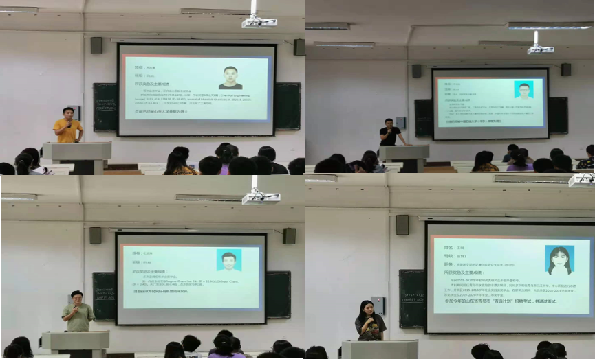 会议伊始,程丽老师介绍了2020届毕业生及往年毕业生就业情况,并详细分析了2022届研究生毕业生就业形势、就业须知等重要信息。另外,她强调同学们一定要有合理的自我定位,做多手准备,主动出击,学会合理预期、稳定心态,明确要达成目标的必备条件。接下来分别由2020届毕业生选调生代表路燕,升学博士学生代表李志远、荆忠鑫,青岛市“青选计划”学生代表王琪,入职企业学生代表杜武博分享就业心得。毕业生们通过本次大会参与师生、同窗互动,共勉成长之路。