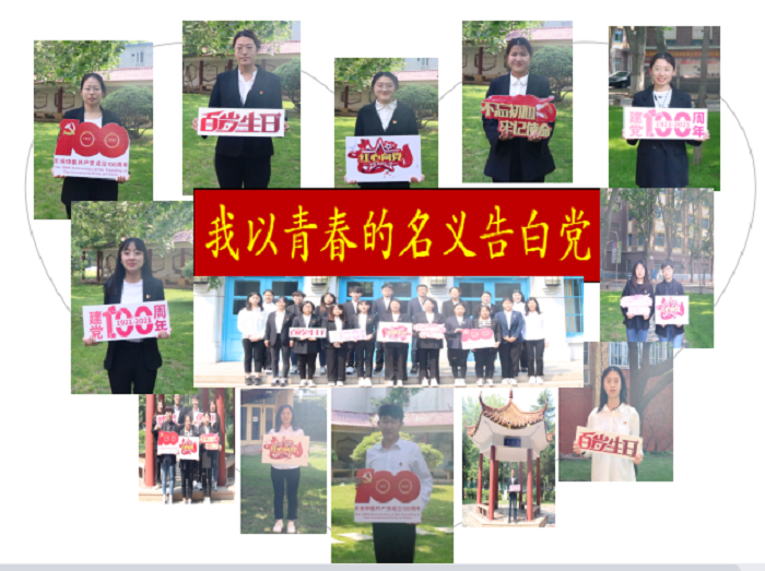 赤子之心,青春告白。面向学院学生党员代表开展“我以青春的名义告白党”拍摄活动,在四方校区的一政楼、爱心亭、文化长廊等场景一人一句祝福语告白党,录制剪辑制作青春告白MV。拳拳之心,悠悠赤子言真情;殷殷之情,青春名义告白党。