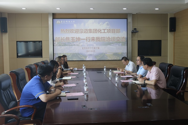 9月8号上午,豪迈集团化工项目部部长焦玉坤、副部长楚福堂、人力资源部招聘总监王同伟一行到我院洽谈交流,化学院院长罗细亮、副院长胡志强、党委副书记兼副院长杨小明参加了此次活动,会议由杨小明主持。