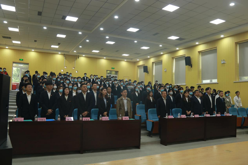 第十一届学生会主席团代表刘朋杰同学宣读大会倡议书《奋进新时代 启航新征程》,倡议学院全体学生坚定理想坚守信念,努力学习积蓄知识,锻造青年英姿,勇于担当敢于创新,厉行节约践行节约,努力践行社会主义核心价值观,切实投身到新时代社会主义事业的伟大实践中!