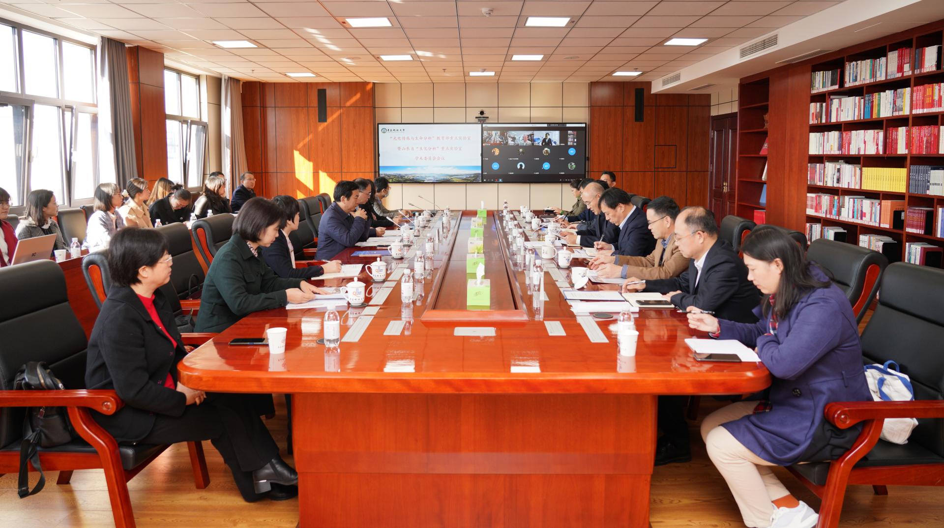 2021年10月23日上午 ,学校“光电传感与生命分析”教育部重点实验室暨山东省“生化分析”重点实验室学术委员会会议在学校崂山校区5015会议室举行。校长陈克正教授出席会议并讲话。教育部科技司一级巡视员高润生,实验室学术委员会主任、中国科学院院士陈洪渊教授,委员会副主任、中国科学院院士田禾教授、谭蔚泓教授、樊春海教授,委员会副主任、清华大学张新荣教授,东北大学副校长王建华教授,南京大学徐静娟教授,复旦大学刘宝红教授,湖南大学张晓兵教授,中国海洋大学杨桂朋教授等学术委员会成员参加了会议。