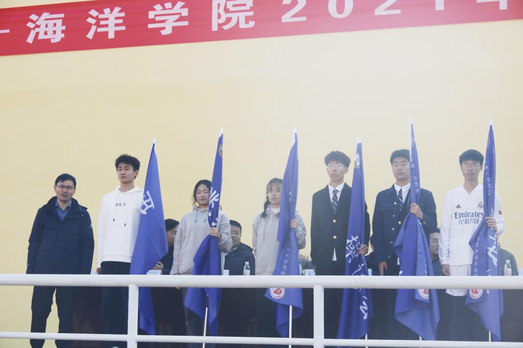 化学院党委书记王德宝教授为化学院体育协会授旗,海洋学院党总支书记周宪锋老师为海洋学院体育协会代表授旗并宣布运动会开幕。