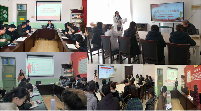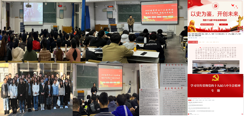 党课宣讲紧密结合,学院师生全体覆盖。学院各支部以支部书记上党课的形式进行十九届六中全会精神宣讲。保证学院全体党员在上党课的同时了解全会思想,加强学习的深度与广度,引导学生关注全会重点热点,深刻把握全会精神实质,让十九届六中全会精神走进每位党员,各师生党员结合自己的学习生活谈分享、写感悟,立大德、担重任。