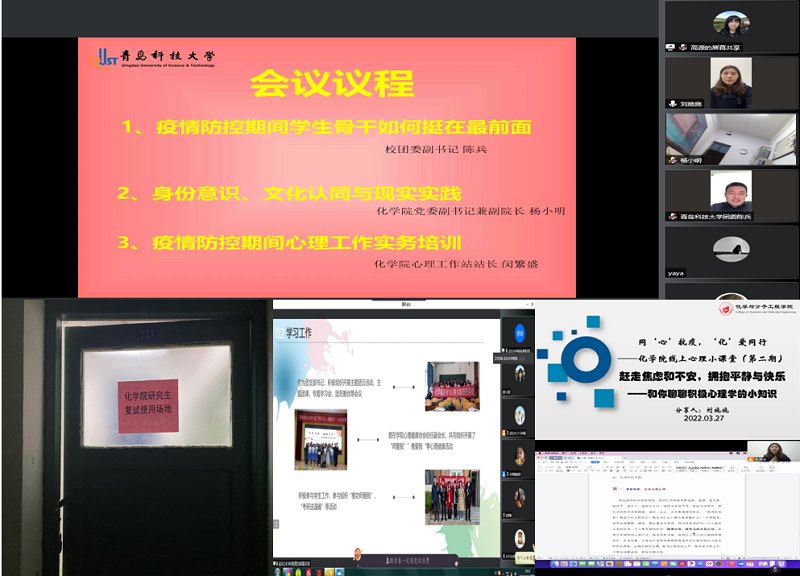 本轮疫情发生以来,化学院始终坚持认真回应学生关切,高效解决学生实际困难。先后召开学团骨干线上交流会、学生骨干志愿者培训会、心理知识线上宣讲会、“温暖研’途’,助力上岸”考研复试培训会、“四困生”帮扶工作、毕业生就业督促等重点工作,统筹好疫情防控和校园日常学生工作有序开展。