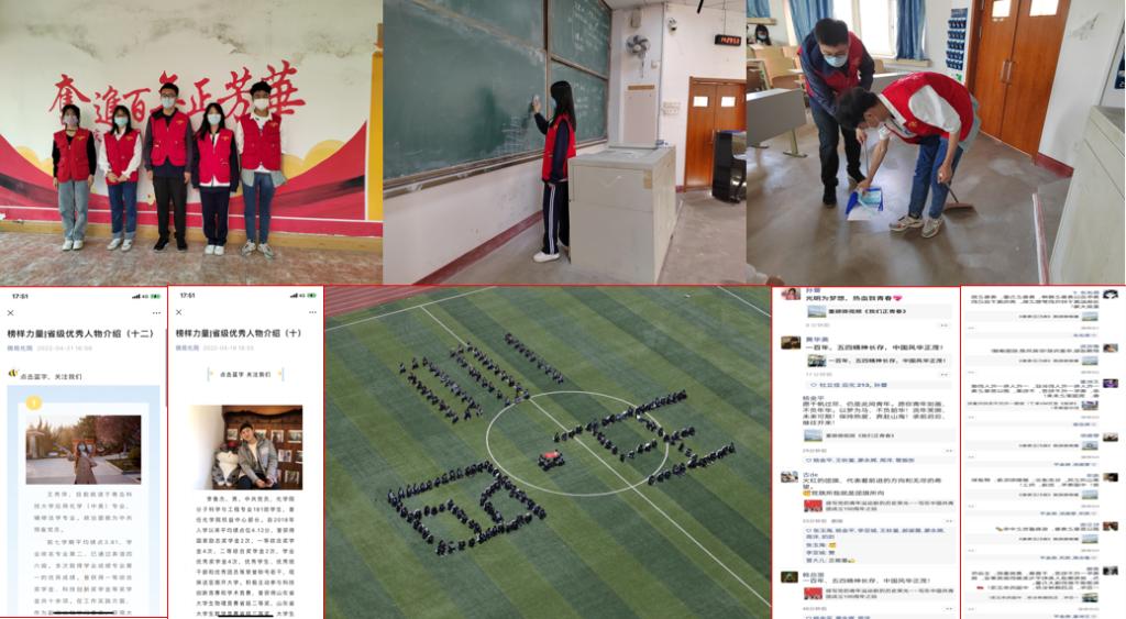 青春奉献有我—榜样引领担当,擦亮“青春底色”。学院在党史文化长廊、教室、宿舍等地开展青春志愿服务、劳动教育实践系列活动,将专业教育、思想政治教育、“双创”教育、社会实践教育相融合,共建美好校园;学院青年学生积极参与核酸检测志愿服务,助力校园疫情防控工作,诠释化院学子青年担当。