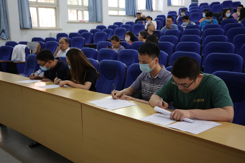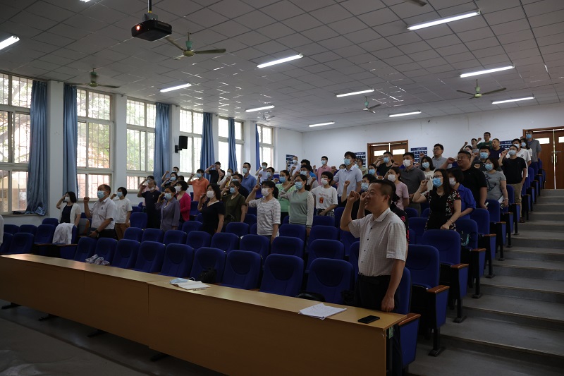王德宝带领全体教职员工进行“人民教师宣誓”。全体教师签订《yl23455永利集团教师师德承诺书》。大家纷纷表示,教育报国守初心,立德树人担使命,争做“四有”好老师和学生心目中的“大先生”,充分感悟习近平总书记“三寸粉笔,三尺讲台系国运;一颗丹心,一生秉烛铸民魂”的教诲,用实实在在的教学科研育人业绩为学校、学院、学科建设贡献力量,喜迎党的二十大胜利召开。
