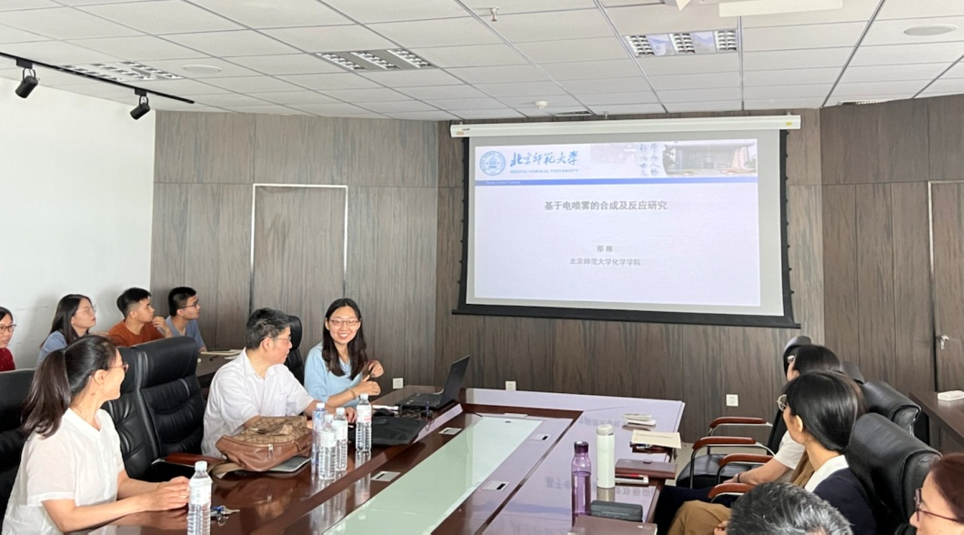 2022年7月18日上午,北京师范大学那娜教授做客yl23455永利集团光电传感与生命分析教育部重点实验室,为广大师生作了题为《基于常压电喷雾的合成及监测研究》的学术报告。讲座活动在CCE大楼1505会议室举行,讲座由化学院院长罗细亮教授主持,重点实验室主任丁彩凤教授等分析化学相关师生出席。