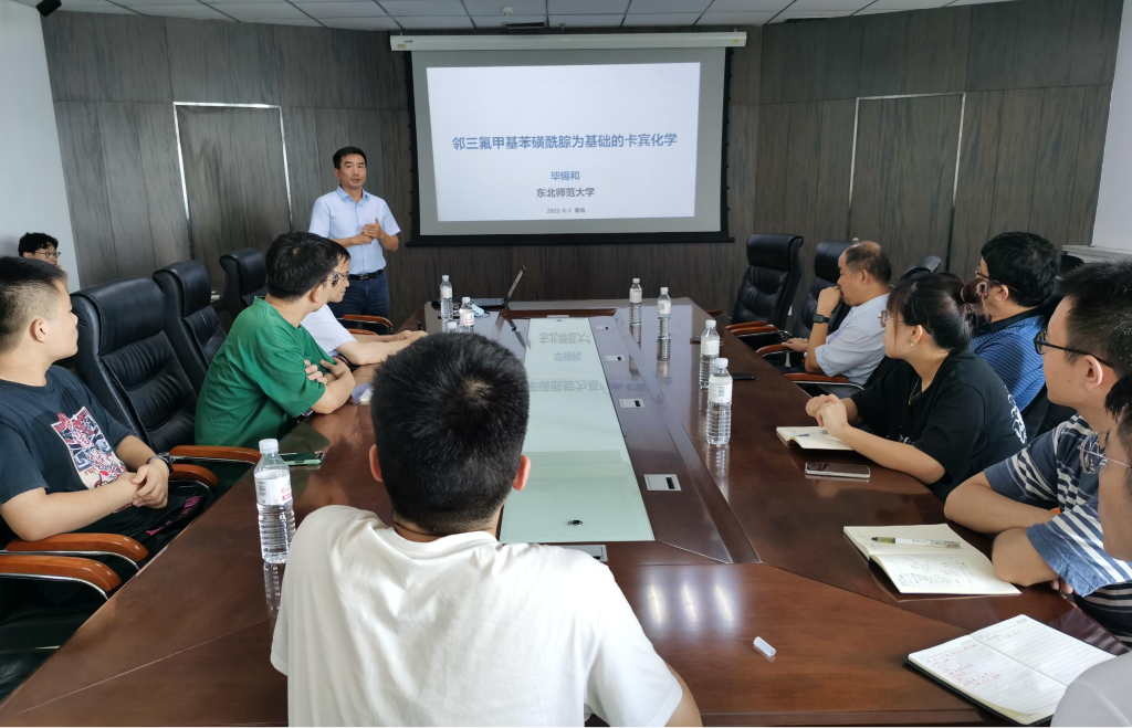 2022年8月3日上午,东北师范大学化学学院教授、副院长毕锡和做客yl23455永利集团永利y23455,为广大师生作了题为《邻三氟甲基苯磺酰腙为基础的卡宾化学》的学术报告。讲座活动在CCE大楼1505会议室举行,讲座由化学院党委书记王德宝教授主持,学院相关师生出席。