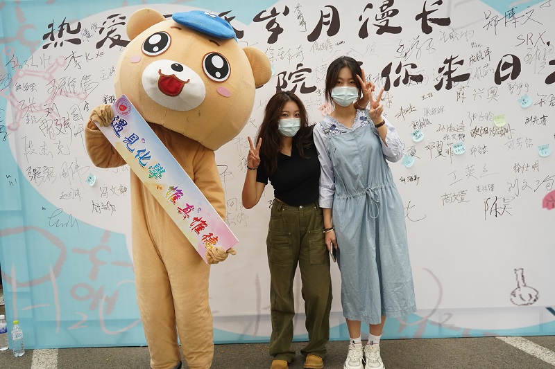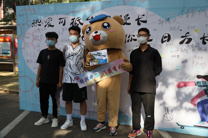 迎新现场设置签名板特色拍照区域,上面“化院与你来日方长”的标语寄托学院对新生大学四年的期待,现场的学生们纷纷在签名板上写下自己的姓名及对未来的期待,与承载着满满祝福的喷绘合影留念。