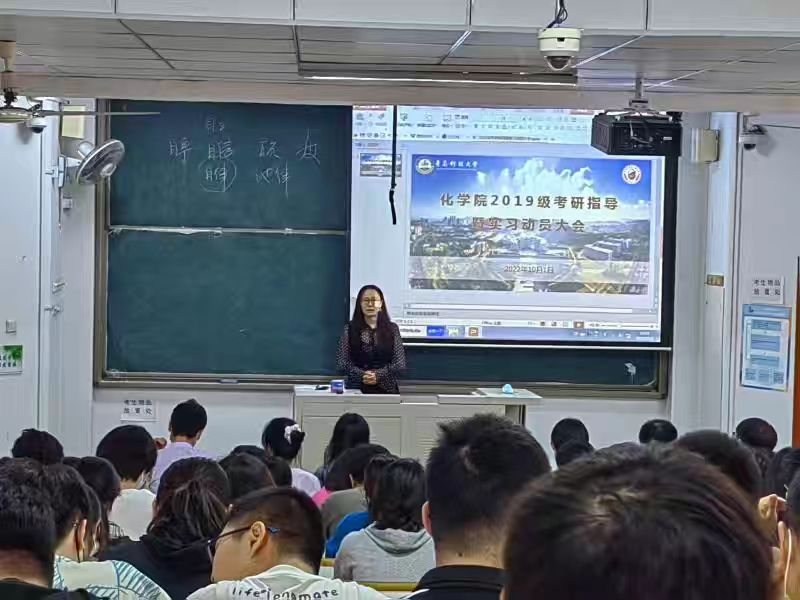 10月1日上午,化学院在2教101和2教115组织开展两场2019级考研指导暨实习动员大会。光电传感与生命分析教育部重点实验室主任丁彩凤、化学院副院长高洪涛、党委副书记兼副院长杨小明、化学教研室主任温永红、应化教研室主任李东祥和2019级全体同学参加会议,会议由2019级辅导员刘施施、昝祺祺主持。