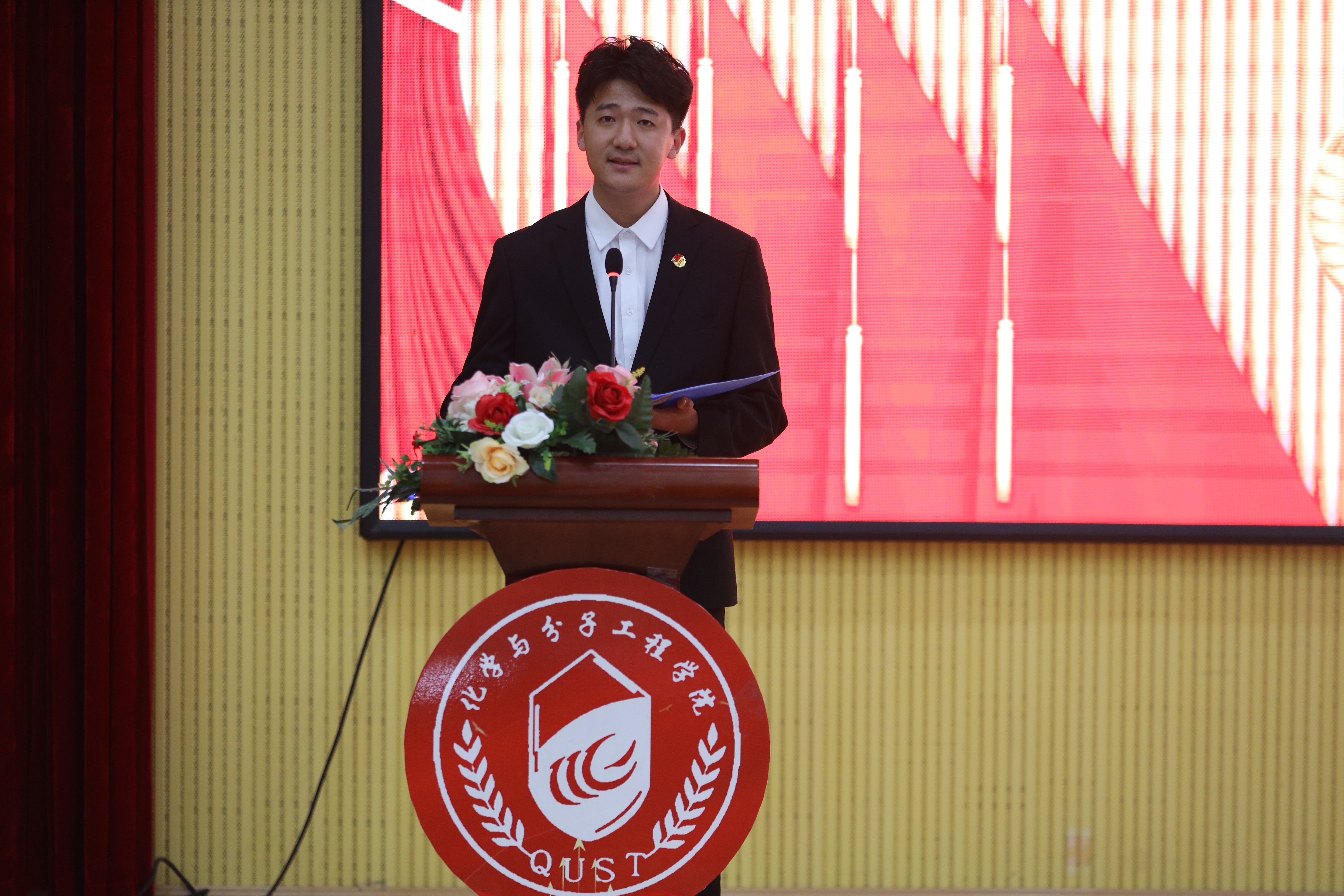化工学院学生代表庞博致贺词,希望两学院学生会组织加强联系,携手共进,共同开创新时期学生会工作崭新局面。王晶晶代表校研究生会发言,号召学院学生会继续与校研究生会、校学生会同行,期望同学们练就过硬的本领、培育高尚的品格,与学校齐发展,努力创造出无愧于时代,无愧于青春的光辉业绩!