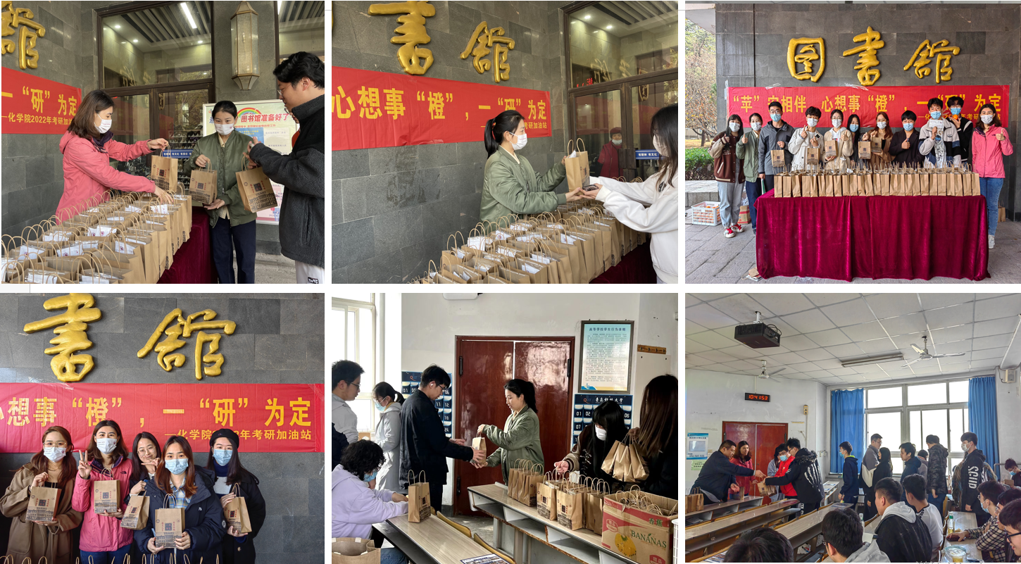 为帮助2023届考研学子坚定备考信心,缓解考前焦虑,传递学院的温暖和关怀,鼓舞考研士气,营造和谐温暖的学院氛围,11月22日、23日,化学院举行“苹”安相伴,心想事“橙”,一“研”为定——化学院考研加油助力活动。