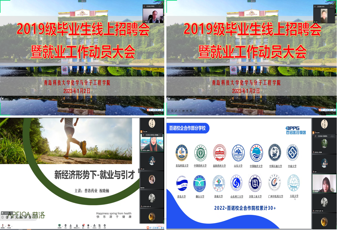 1月2日,化学院2019级毕业生线上招聘会暨就业动员大会线上举行,引导青年学生“离校不离心、求职不断线”。校党委常委、副校长、永利y23455院长罗细亮,普洛得邦、百诺医药、鲁南制药人力资源负责人,校学生处副处长徐华,学院党委书记王德宝,光电传感与生命分析重点实验室执行主任丁彩凤,副院长高洪涛,学工办全体辅导员,2023届全体毕业生近300人参加会议,学院党委副书记杨小明主持会议。