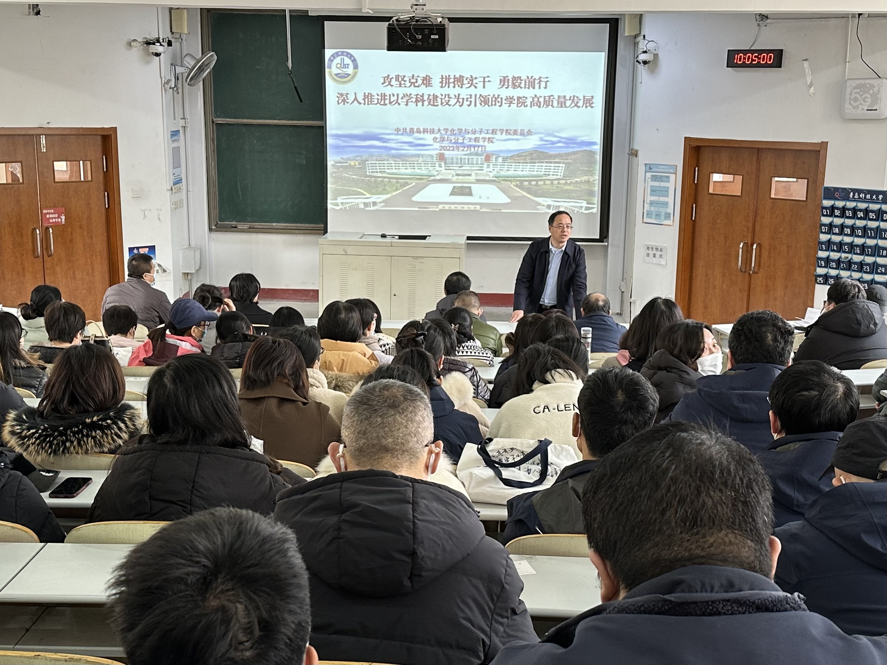 2月17日上午,化学院在二教315教室召开学院大会,大会主题是“攻坚克难、拼搏实干、勇毅前行、深入推进以化学学科为引领的学院高质量发展”。校党委常委、副校长、化学院院长罗细亮和学院147名教职员工参加会议,会议由学院党委书记王德宝主持。