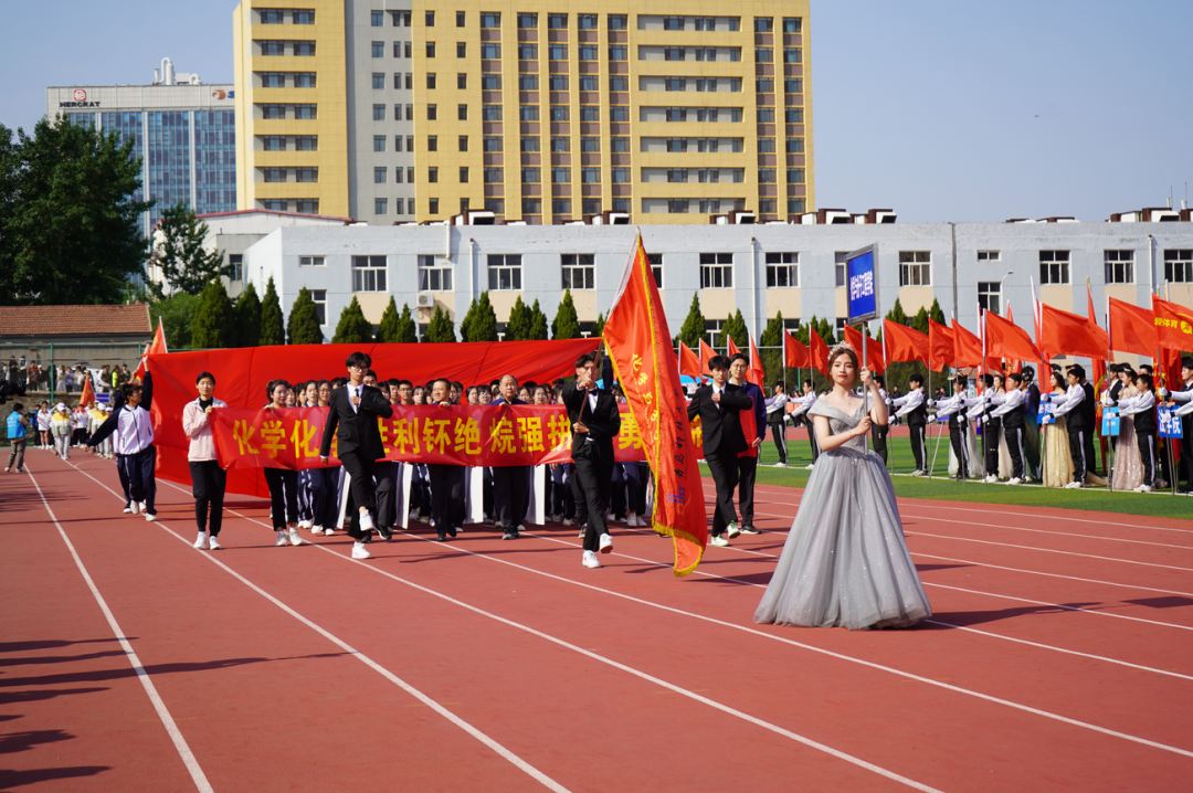 上午8时,伴随着激昂向上的运动进行曲,校运会入场式表演正式开始。学院方队用整齐的着装、铿锵有力的口号、奋发向上的精神,向全校师生展现了化院师生朝气蓬勃、积极向上的精神风貌。