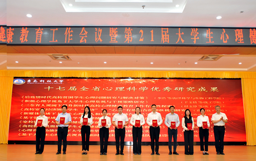 学生处副处长曹永俊主持会议。大会为优秀心理委员、朋辈互助先进个人、优秀朋辈互助团体、示范工作站、十七届全省心理科学优秀研究成果进行了颁奖。并对学院心理工作站站长、心理健康课教学督导员、校级兼职心理咨询师进行聘任。