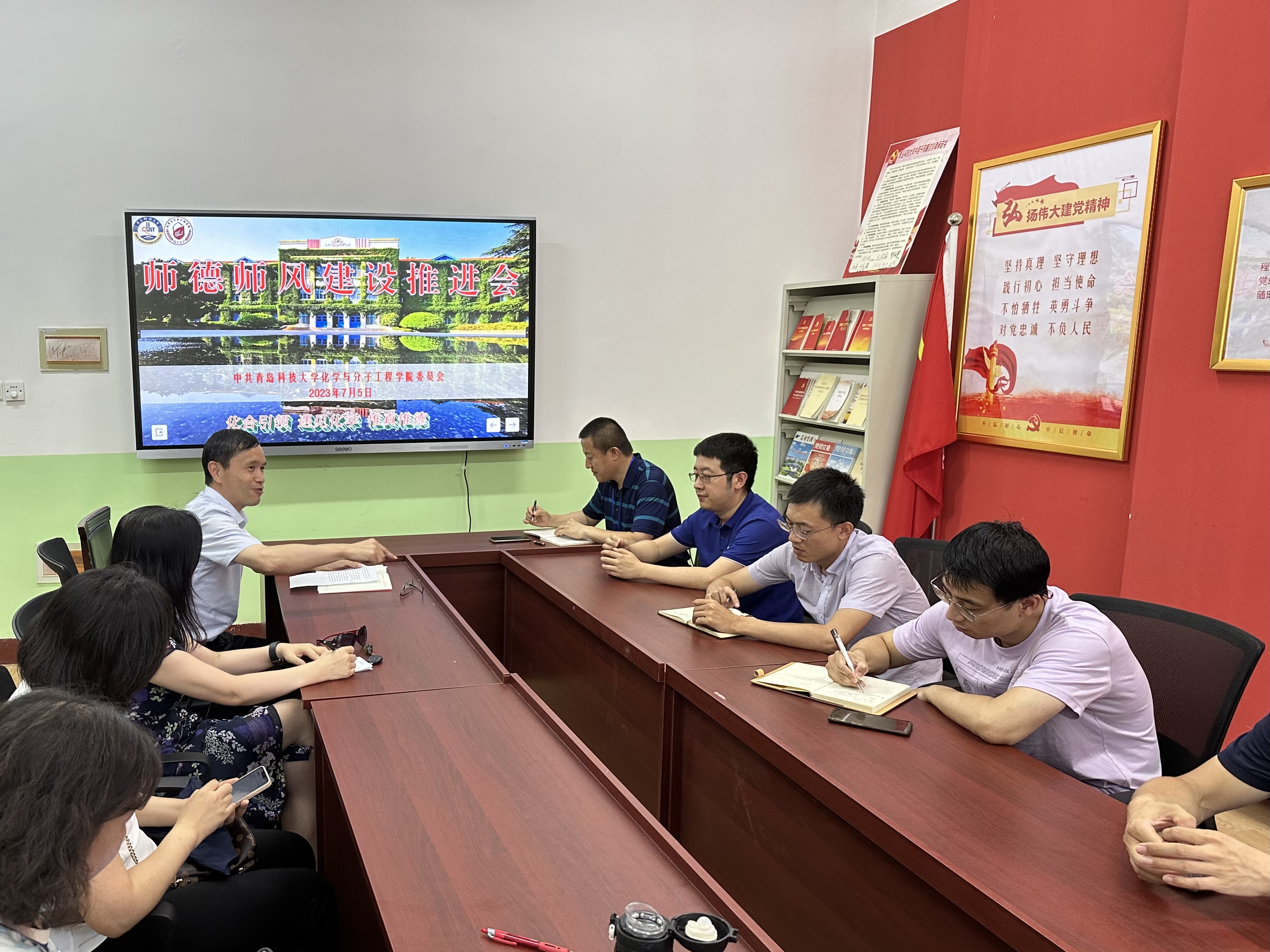 7月5日,学院师德师风建设工作推进会暨主题教育调研座谈会在学院党建活动室召开。学院师德师风建设领导小组成员、基层党组织负责人及各教研室主任参加会议。会议由化学院党委书记王德宝主持。