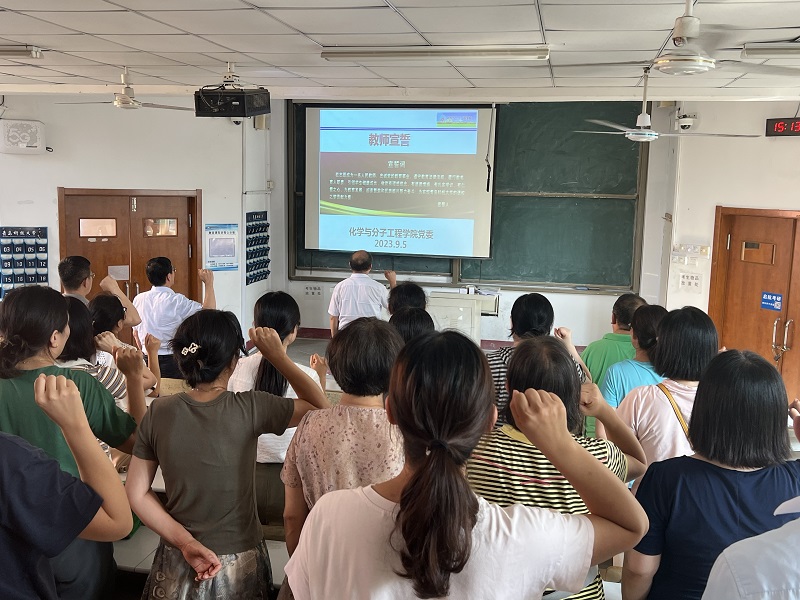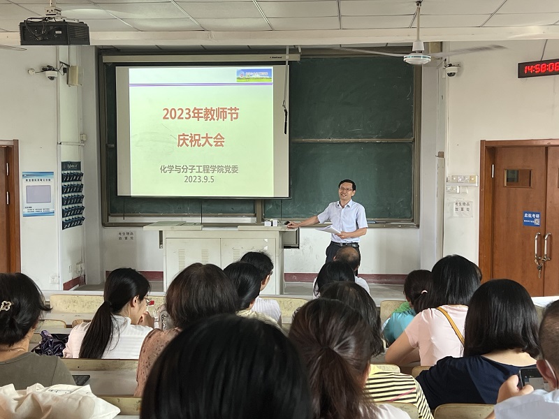 另悉,9月5日,化学院师德师风专题教育在2-101举行,学院全体教职员工参加。学院党委书记王德宝代表学院向各位老师祝贺教师节快乐,号召全体教师向老一辈优秀教师学习,牢牢坚守立德树人根本任务,忠诚党的教育事业,贯彻党的教育方针,争做“四有”好老师,对得起三尺讲台,不辜负社会的期望。王德宝希望教职员工结合自身工作经历和岗位实际,把教书育人作为首要职责,精益求精,守正创新,时刻问一问自己心中的“国之大者”,不断推动教学科研再上新台阶。