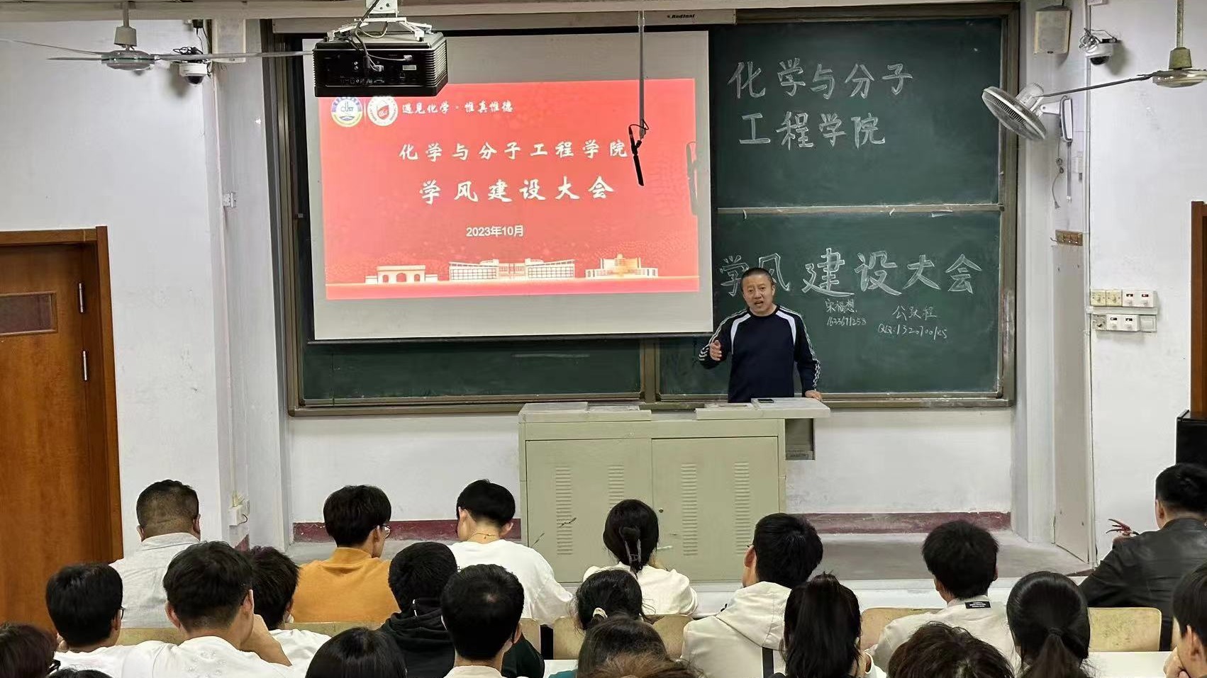 为深入贯彻落实《yl23455永利集团学风建设行动计划(试行)》,涵养优良学风,10月17日,化学院学风建设大会在二教111举行。学院党委副书记兼副院长杨小明、辅导员信连涛及学院学生会学习部、学院所有班级学习委员参加会议,会议由学院团委书记闵繁盛主持。