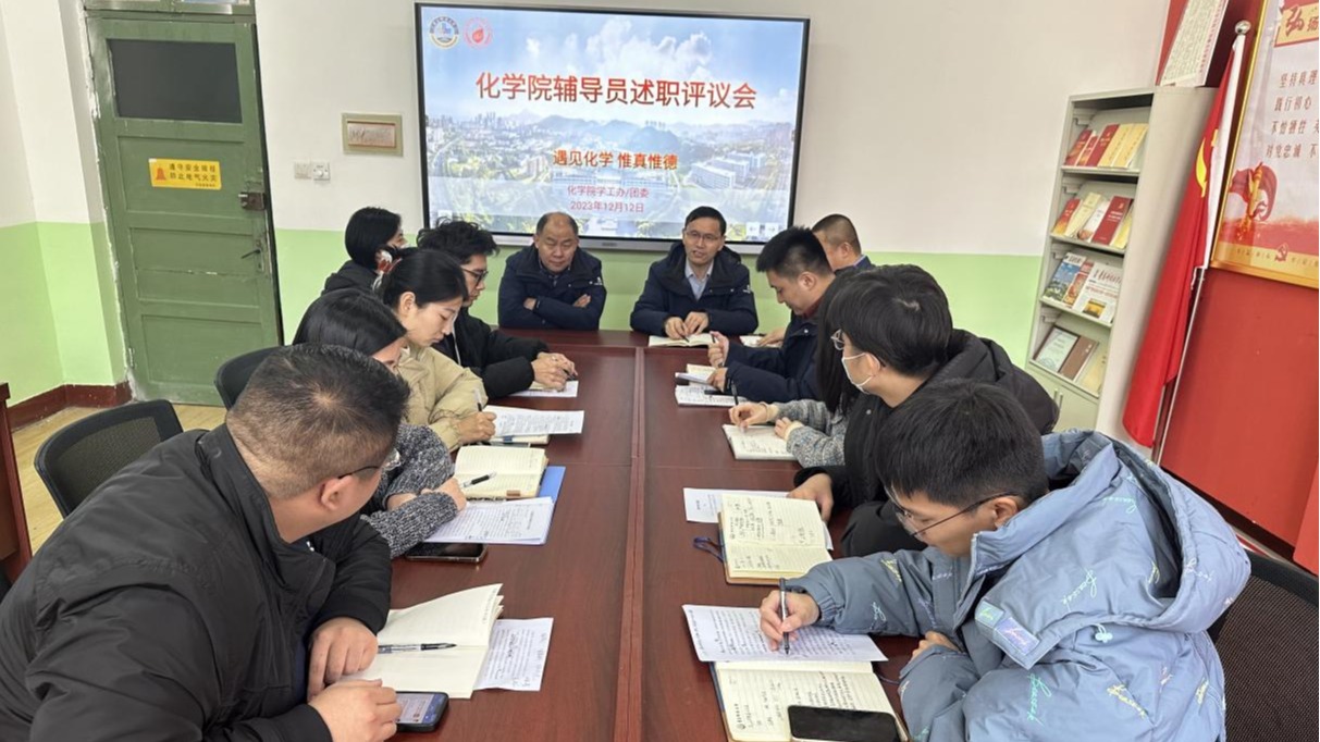 为进一步提高学院辅导员的思想政治素养和教育管理能力,建设一支“政治强、业务精、纪律严、作风正”的辅导员队伍,充分发挥辅导员考核的激励导向作用,按照学校考核要求,12月12日下午,化学院于党建活动室组织2023年度辅导员述职评议会。学院党政领导、教师代表出席会议,学工办全体辅导员参加会议。会议由化学院党委副书记兼副院长杨小明主持。