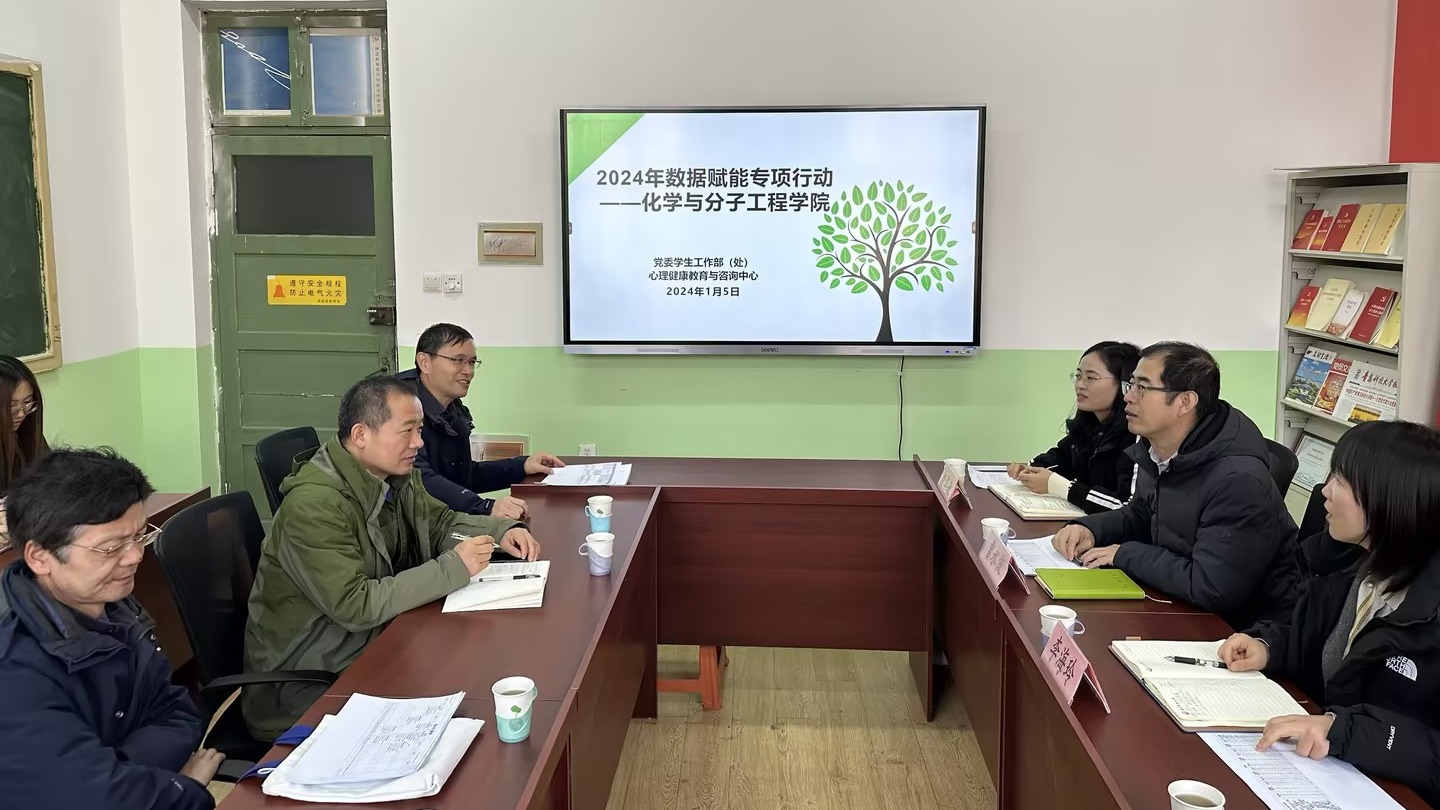1月5日上午,学生处副处长曹永俊率校心理咨询中心老师来化学院开展数据赋能心理健康教育专项行动。化学院党政领导班子、教研室主任、全体辅导员参加会议。会议由化学院党委书记王德宝主持。