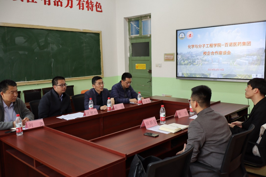 座谈会上,肖强对田新宇一行来院交流座谈表示欢迎,对百诺医药长期以来对学院就业工作支持表示感谢。汪恕欣介绍了学院办学特色、学科优势、产学融合发展等方面的基本情况,并就人才培养、学生培养方案改革等问题听取了企业的意见。