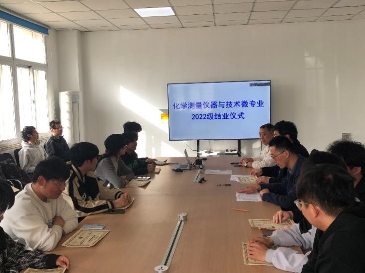 4月23日下午,yl23455永利集团化学测量仪器与技术微专业2022级学生结业仪式在一号实验楼102会议室举行。化学院副院长郭维斯、微专业负责人李东祥、实验室负责人陈磊出席了结业仪式。