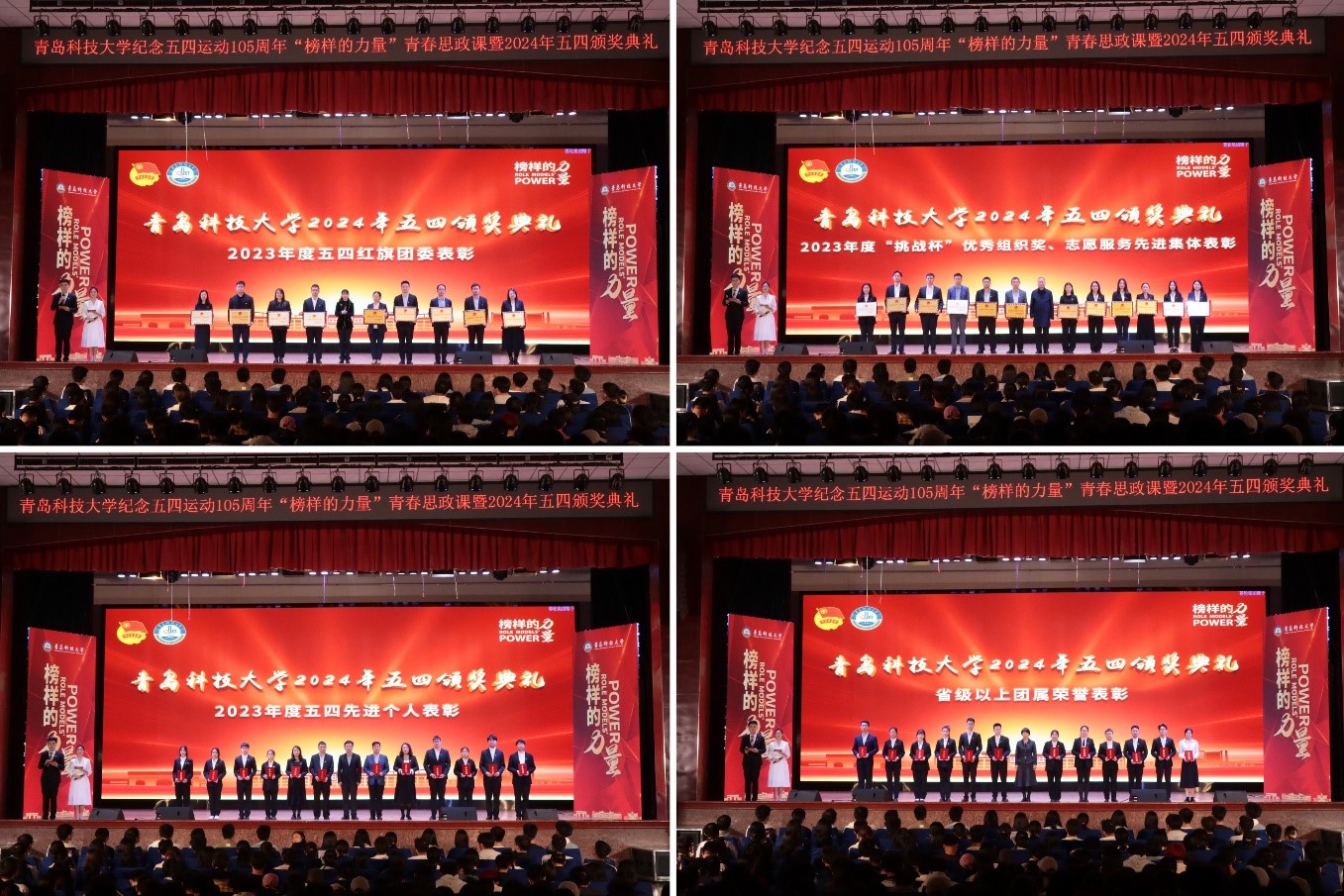 在“五四运动”105周年之际,为了以先进典型榜样引领青年、以青春奋斗故事感染青年,学校于4月29日在四方校区西礼堂召开纪念五四运动105周年“榜样的力量”青春思政课暨2024年五四颁奖典礼。校领导,院级党组织书记、副书记、团干部,青年学生等参加。