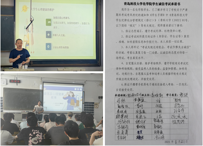 为加强学风建设,严肃考试纪律,营造文明、诚信的良好氛围,按照学院学风建设月活动计划安排,化学院于6月11日—24日在全院范围内开展诚信考试教育主题班会,覆盖了全体在校本科生、研究生,各班班主任主持班会。