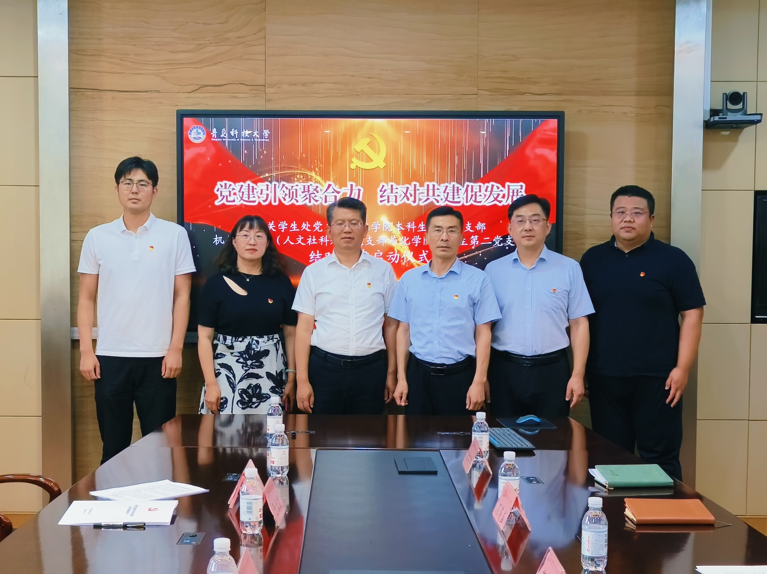为全面贯彻党的二十大精神和新时代党的建设总要求,持续强化党建引领发展、聚力发展、融合发展,不断激发基层党组织工作活力,推动“样板”支部创建和“我为师生办实事”活动走深走实,7月8日,机关党委学生处党支部、科技处(人文社科处)党支部与化学院党委本科生第一党支部、第二党支部开展结对共建启动仪式。机关党委书记步德胜、副书记王伟,学生处党支部书记王丽、副书记尤亭亭,科技处(人文社科处)党支部书记于立岩,化学院党委书记肖强、组织员张同雷、团委书记闵繁盛、本科生第一党支部书记王森、本科生第二党支部书记信连涛及相关党员参加仪式,仪式由化学院党委副书记兼副院长刘尧主持。