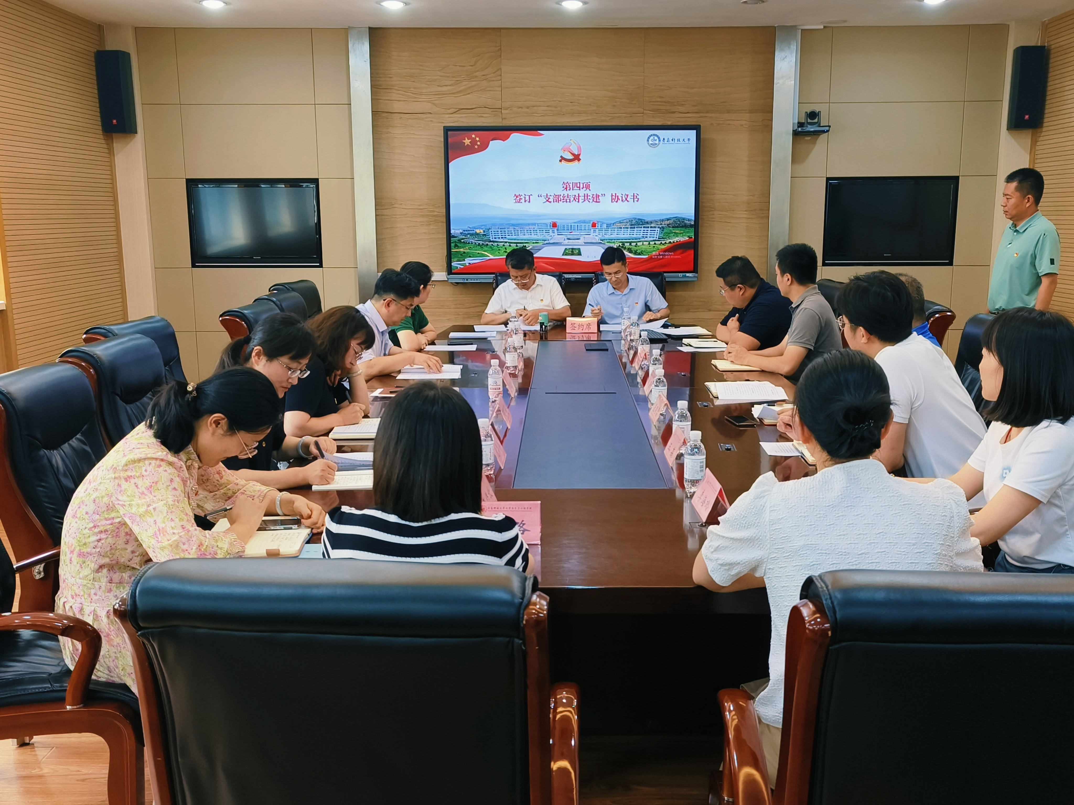 接着,步德胜与肖强进行了签约,王丽、于立岩分别与王森、信连涛签约。随后与会人员观看了“全国永利集团样板支部”宣传视频,并开展座谈交流,大家围绕“资源共享、优势互补、共促共赢”,对支部共建、学院学校发展,以及对机关部门教学、科研、管理、服务等方面进行了深入交流。